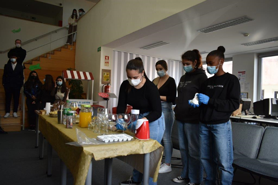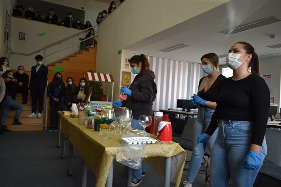 No âmbito do desenvolvimento do Projeto Interdisciplinar da turma de 3.º ano, do Curso Técnico de Turismo, denominado de F&B for You, os alunos deram a conhecer à turma TT 2020-2023 os diferentes tipos de Serviço de Mesas e o Serviço de Bar existentes, nomeadamente os serviços à francesa, à inglesa direto e à inglesa, indireto.
